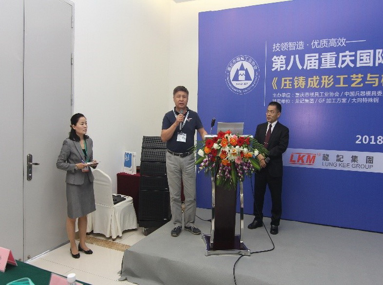 這次大同特殊鋼受邀成為贊助單位,并在5月10日由大同特殊鋼(上海)有限公司瓜田高級(jí)經(jīng)理主講了[壓鑄成型工藝與模具新技術(shù)]之[典型壓鑄模具失效案例鑒析及用材技術(shù)動(dòng)向]研討會(huì)。重慶模具界近百名人士參加了此次研討會(huì),其間講師與聽眾進(jìn)行了良好有效的互動(dòng)溝通,還有中國兵器模具委員會(huì)首席技術(shù)顧問/高鵬先生作現(xiàn)場點(diǎn)評,場面氣氛熱烈難得一見。會(huì)后,大家都感言獲益良多。